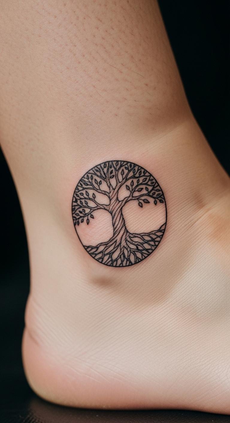 A tree of life mini shows roots and branches on your ankle. Picture a tiny tree form. This stands for strength. Sketch trees quickly. Get temporary designs. Find artist sales. Personalize the leaves. Use simple bandages. Ideal for nature fans. Go for this if you seek depth.