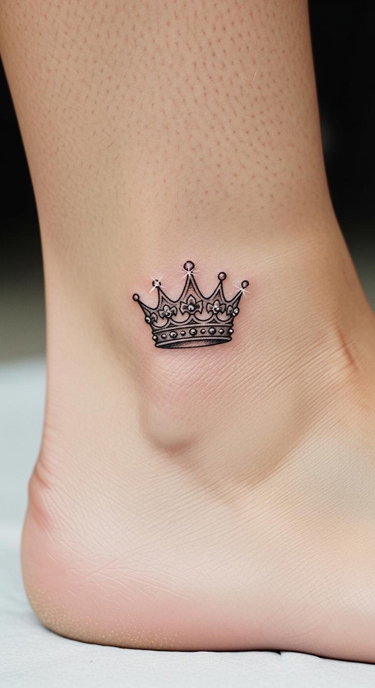 A crown jewel tattoo adds royalty to your ankle. Think of a small crown with dots. This feels empowering. Draw crowns on paper. Try stickers for cheap. Check online for rates. Make it sparkly. Heal with ease. Great for confidence. Choose this for power.