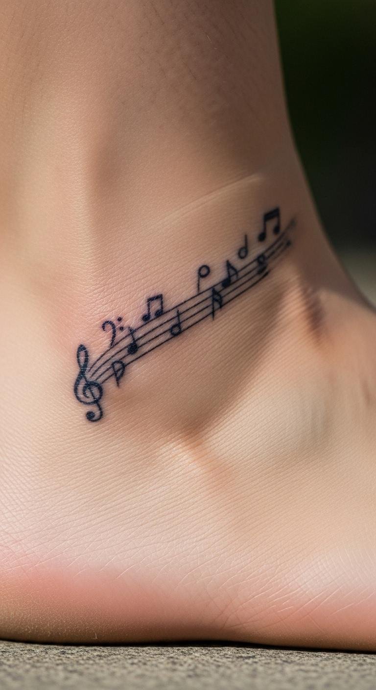 A music note sequence celebrates sound on your ankle. Envision linked notes. This design is rhythmic. Write notes yourself. Use budget transfers. Look for deals. Add your favorite tune. Protect carefully. Perfect for musicians. Select this for melody.