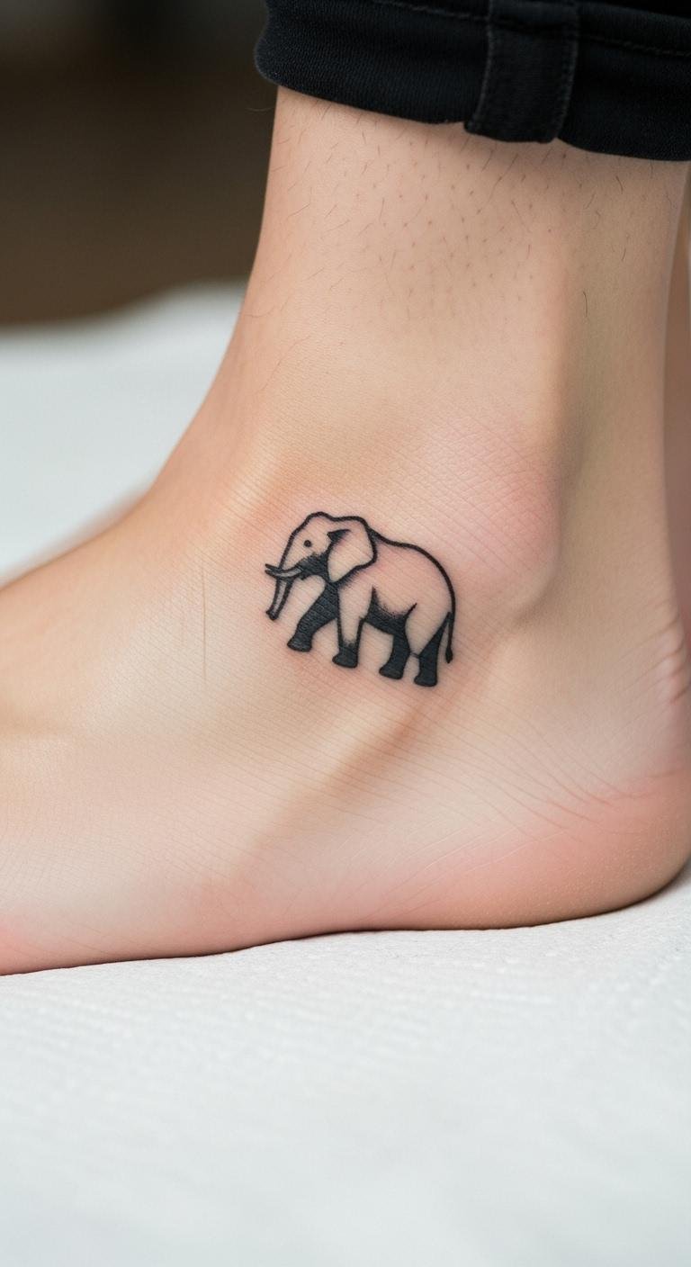 An elephant silhouette tattoo stands for memory on your ankle. Think of a simple shape. This design is strong. Trace elephants. Try stickers. Check for discounts. Add trunks. Heal with ease. Great for traditions. Choose this for recall.