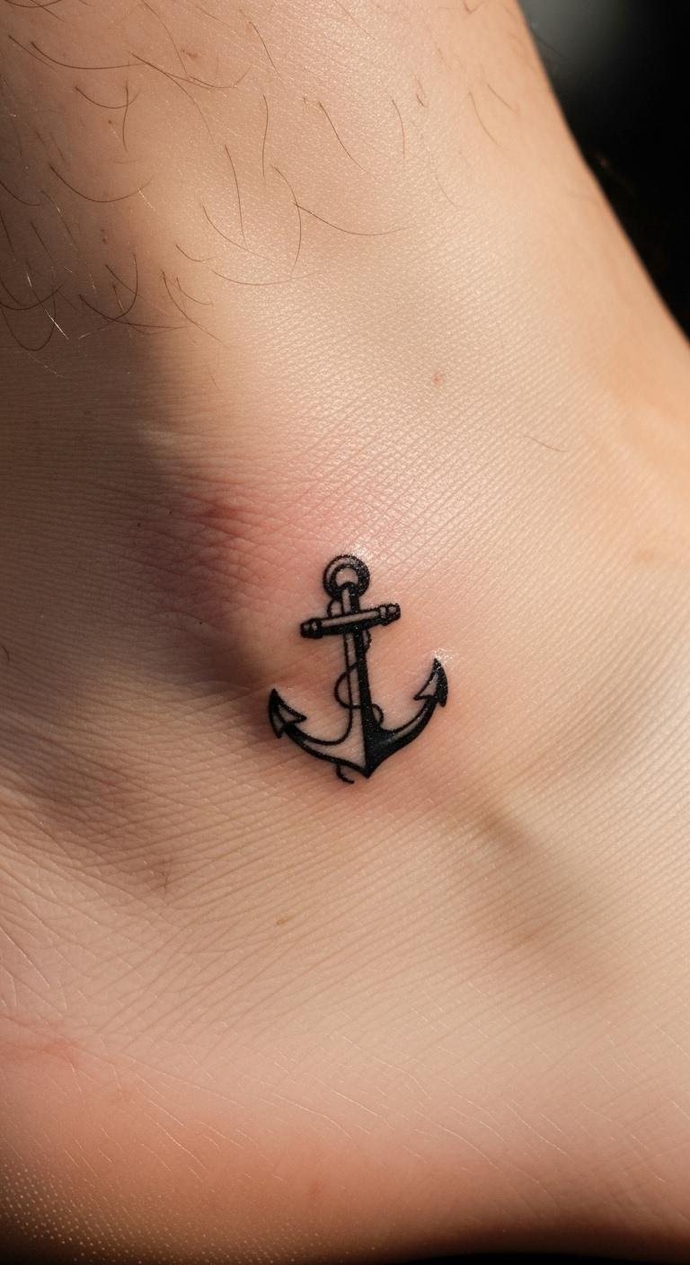 A small anchor design represents stability on your ankle. Picture a straightforward shape that holds meaning. This tattoo feels strong and simple. Sketch ideas on paper before committing. Try a henna kit for a cheap preview—about $3 online. Find artists through community groups who charge less for small work. Customize by including waves around it. Use basic bandages from home for aftercare. Great for travel or daily routines. Go for this if you value steadiness.
