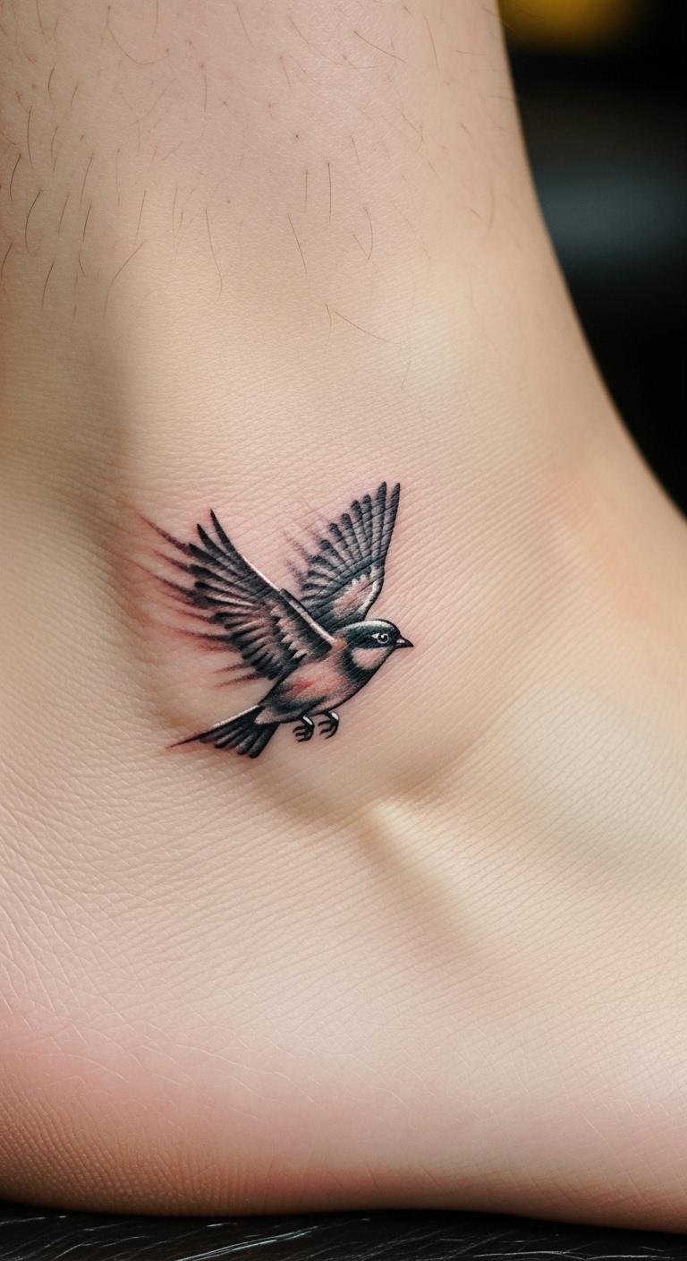 A bird in flight tattoo symbolizes freedom on your ankle. Imagine a simple bird shape taking off. This brings lightness to your step. Practice with free drawing tools online. Try stick-on tattoos for $5. Find deals at walk-in studios. Personalize with different birds. Keep it dry with household items. Ideal for adventurers. Choose this for uplift.