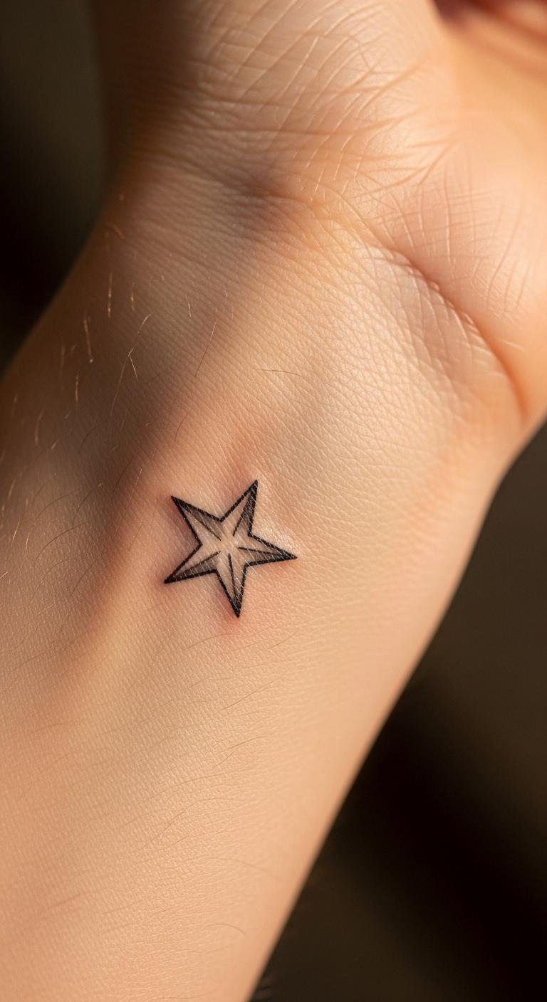 A star on your wrist keeps things simple and meaningful. Pick a tiny five-point design for a quick session. Start by sketching it on paper to see how it flows. For budget tips, use free online apps to try designs at home before visiting a shop—costs nothing extra. Choose black ink to last longer and skip colors that fade fast. Break it down: Find an artist who does fine lines well. They charge around $50 for small work. Add a personal twist, like adding a dot for a birthdate. This tattoo reminds you of guidance daily. Keep it fresh with sunscreen on that spot. Easy action: Snap a phone pic of your wrist to plan placement. No need for fancy tools—just basic drawing supplies from home.