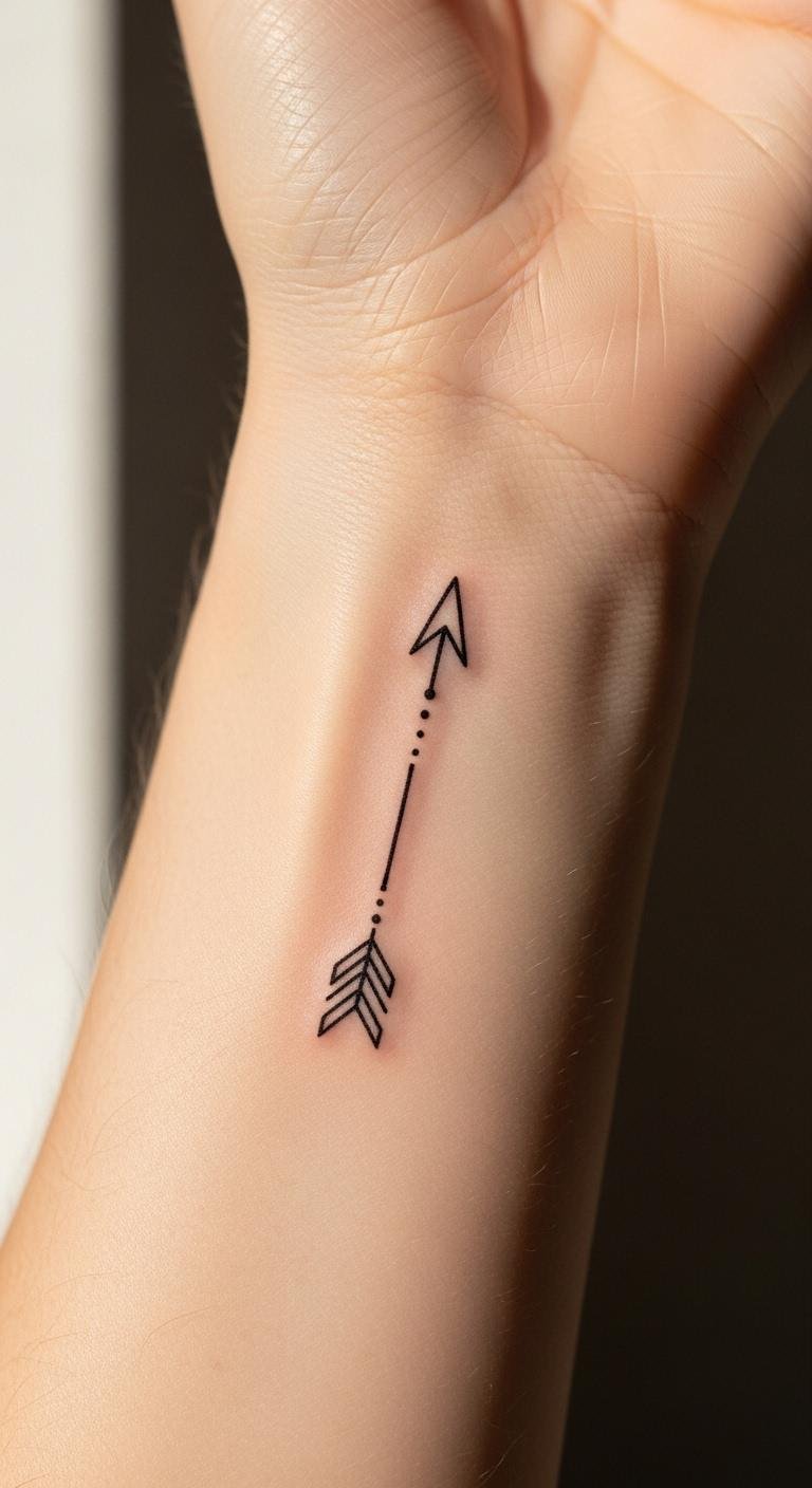 An arrow on the wrist points to paths ahead. Choose a straight design. Doodle arrows on paper. Budget at $40. Add feathers. Visible daily. Test at home. This means forward motion. Use sunscreen. Draw one now.