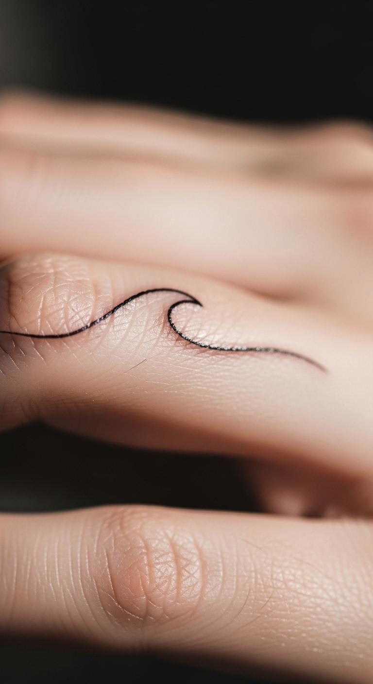 Waves on the finger bring calm. Pick a simple curve. Practice drawing waves. Cost around $30. Customize with ripples. Easy to see. Use temporaries. This design suggests peace. Basic care. Sketch it.
