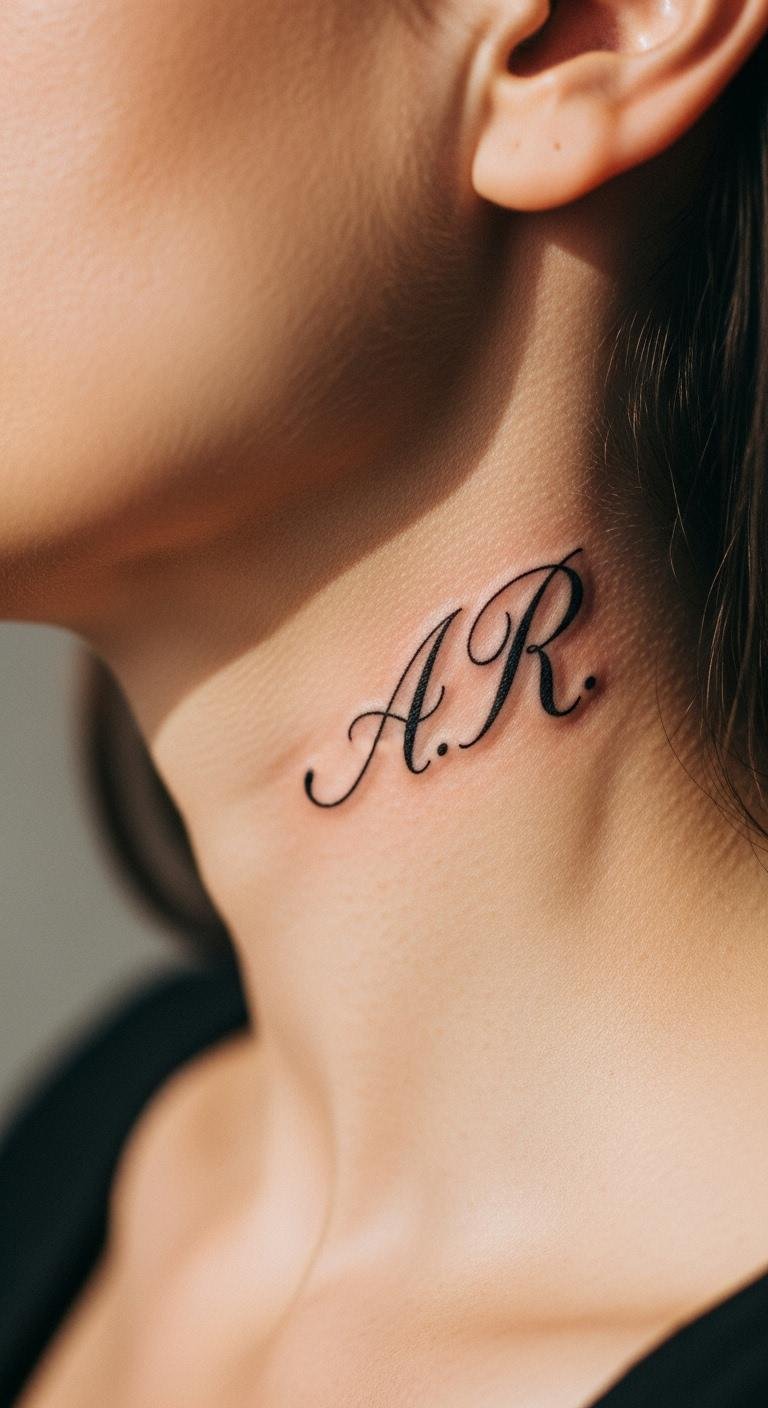 Initials on the neck mark identity. Select your letters. Write them out. Budget $50. Add styles. Hide under hair. Test first. This means personal bond. Daily protection. Plan now.