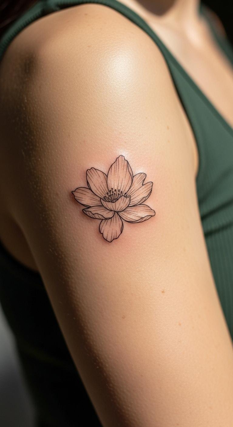 A flower on the upper arm brings joy. Choose simple. Sketch flowers. Cost $50. Personal touches. Flex spot. Home tests. This means growth. Use lotions. Start now.
