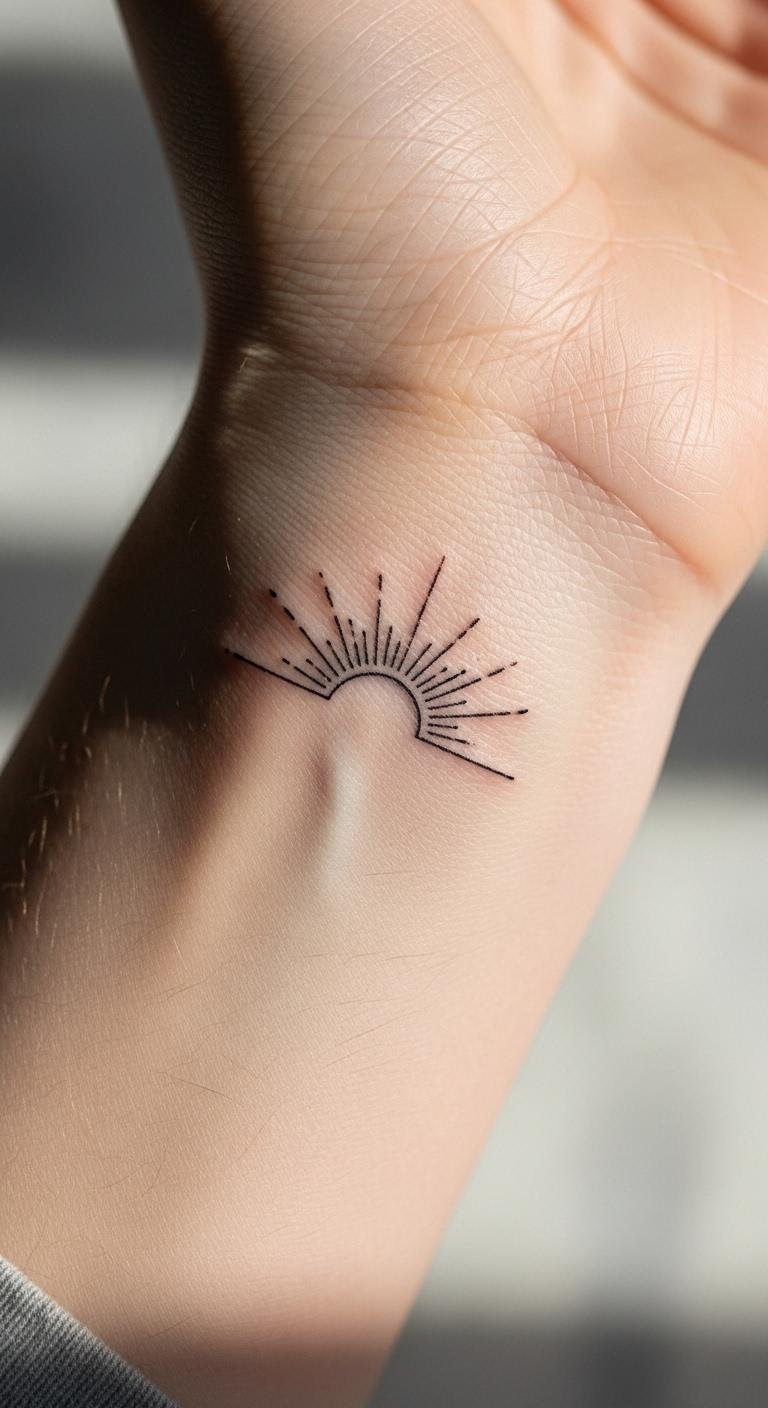 Sun on the inner wrist brings light. Go for rays. Draw suns. Around $40. Make it unique. Easy spot. Test at home. This means energy. Use sunscreen. Start drawing.