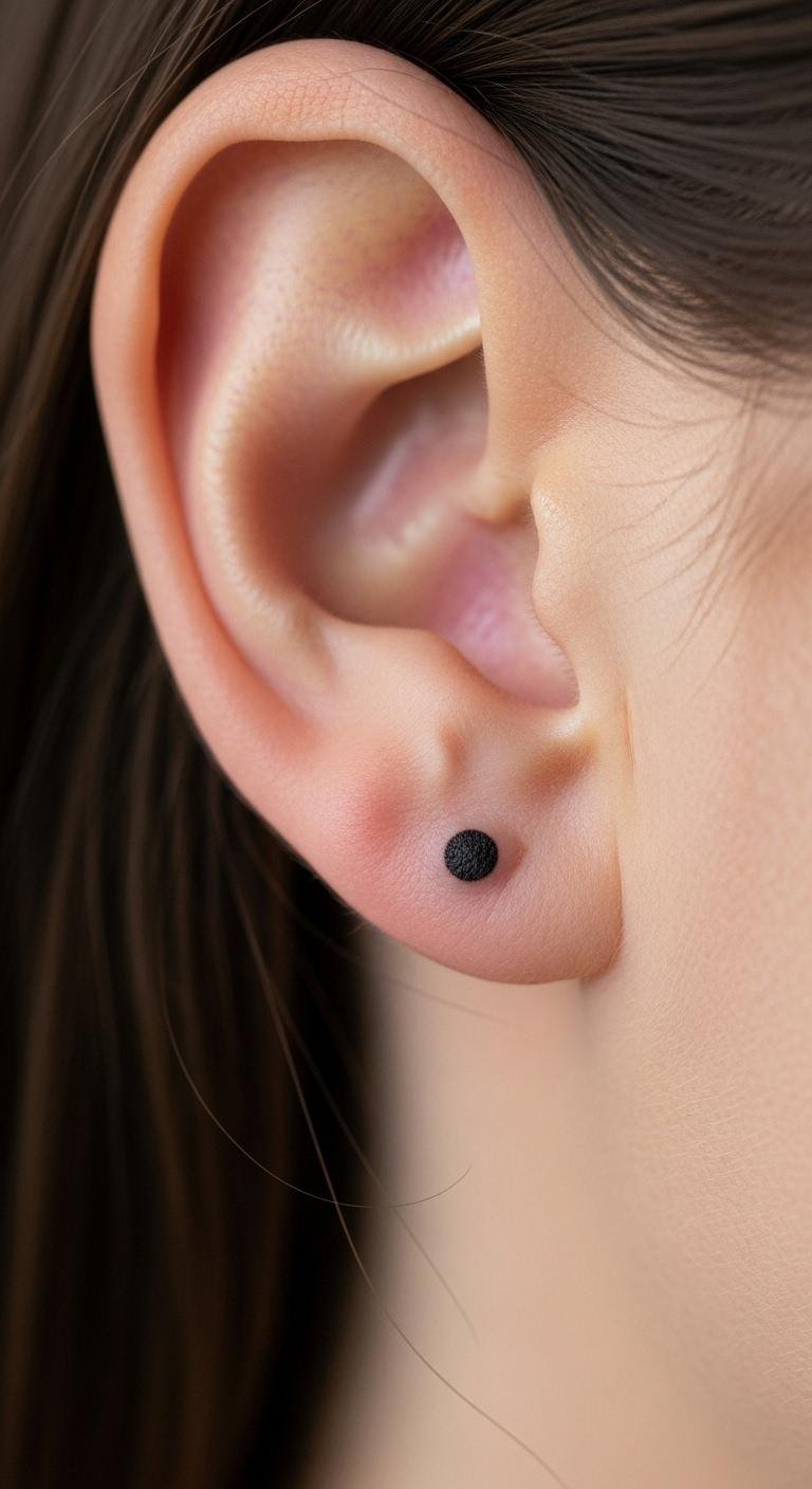 A dot on the ear lobe keeps it minimal. Pick a single point. Mark it with a pen. Budget at $20. Make it a pair. Tuck behind hair. Use a dot sticker first. This means simplicity. Protect from sun. Dot your plan.