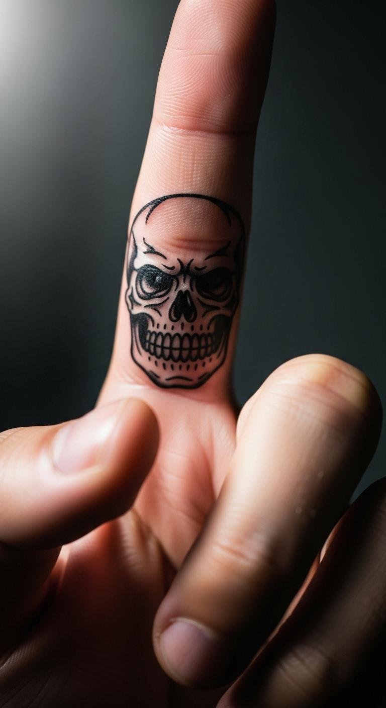 Skull tattoos represent strength in a compact way. Place one on your finger for a tough edge. It’s about facing challenges head-on. These cost less than $90 with simple shading. Draw skulls on paper to refine your idea before committing. Stick to black ink for classic appeal. Traditional skull tattoos hold up over time with sun protection. Check for artist discounts online. Add a small detail, like a cross, for meaning. Aim for quick appointments to fit your schedule.