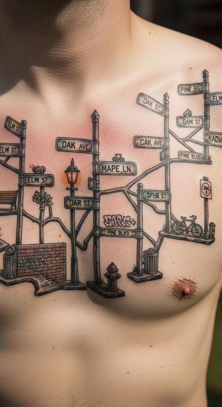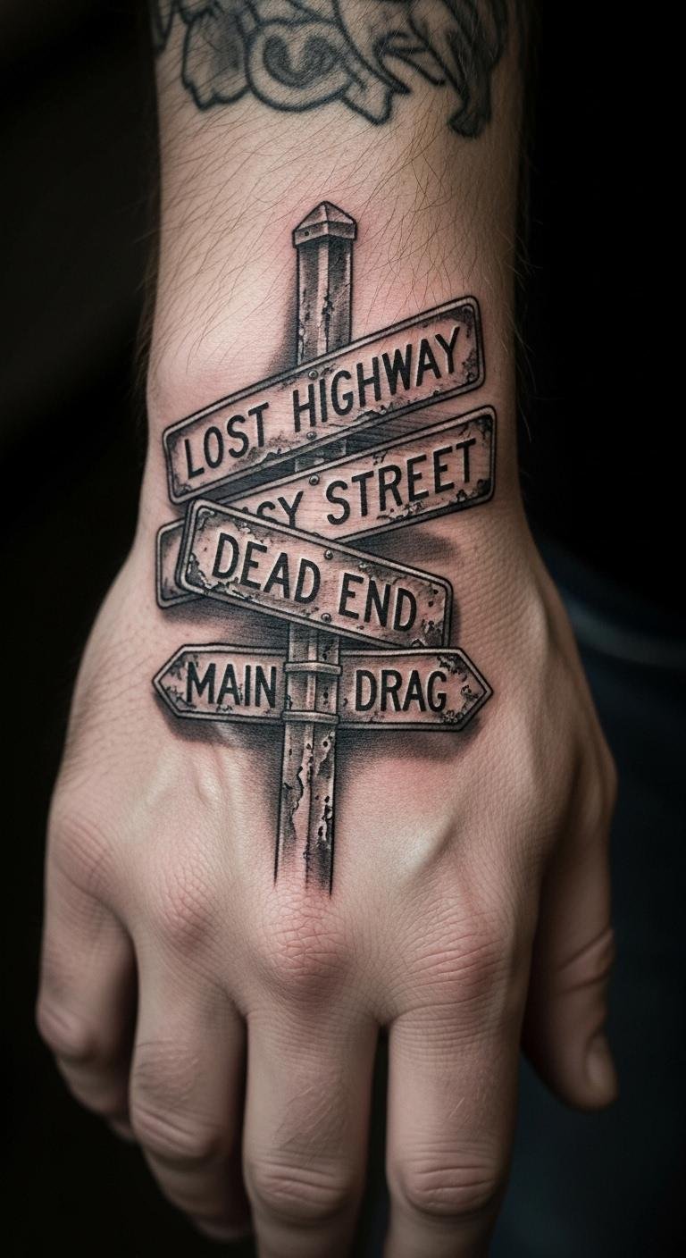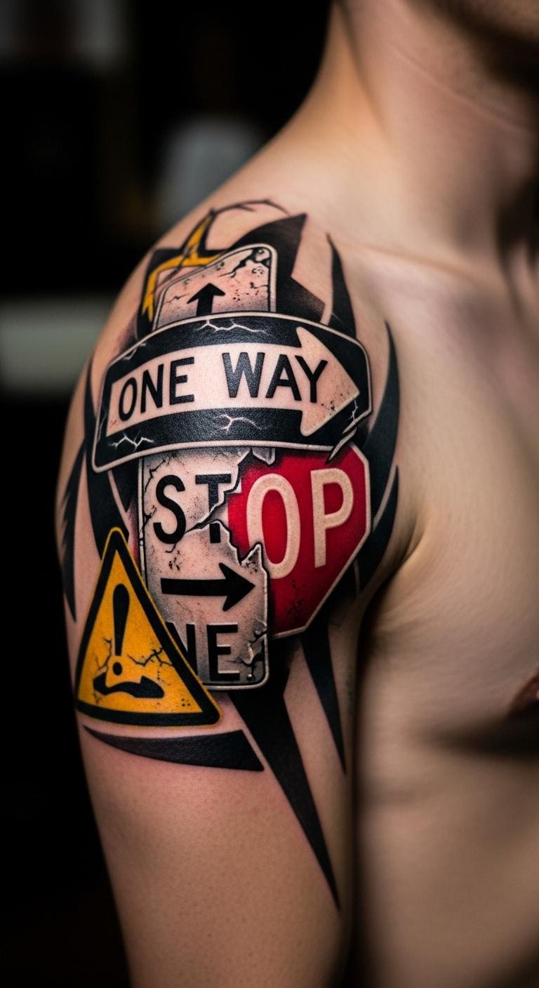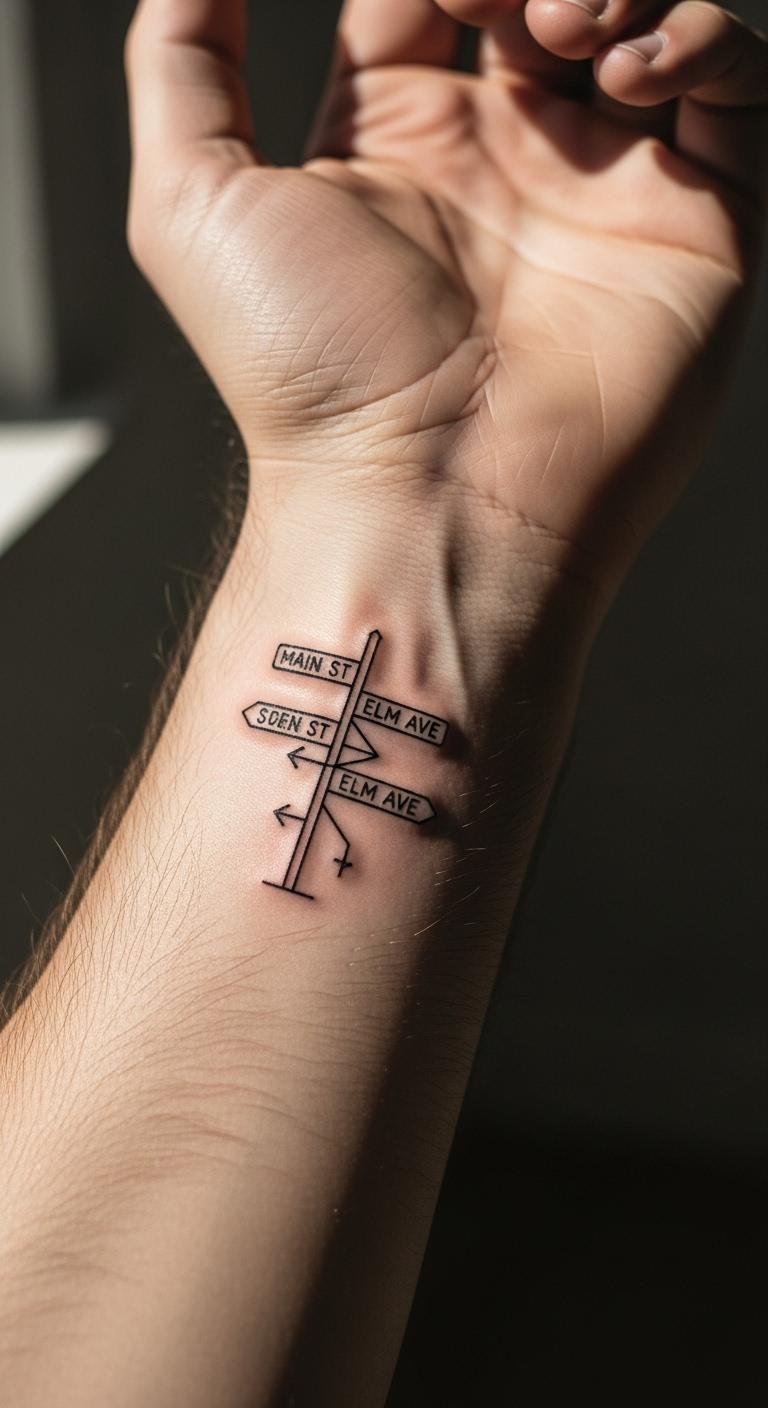 Street sign tattoos capture the essence of life’s paths and personal stories for men. These designs turn everyday urban symbols into bold statements of identity, roots, and journeys. Men often choose them to mark key moments or hometowns, blending simplicity with deep meaning. Explore these ideas to find one that speaks to you and adds a personal edge.