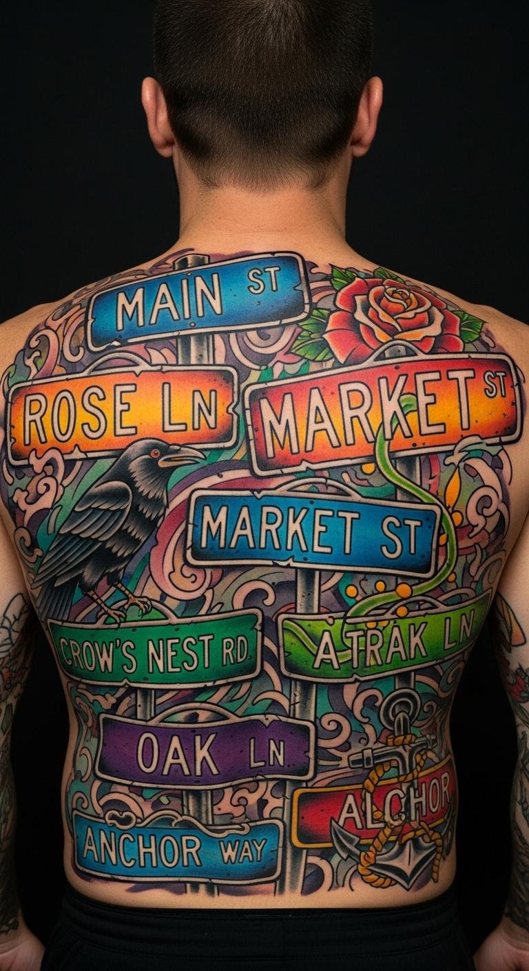 Think about your old neighborhood. A classic sign like “Main St.” works great. Start with a sketch on paper. Use free online tools to draw it out. Pick a local artist who does line work. Keep costs low at under $100 for a small design. Add personal touches, like a small house icon. Break it down: choose your street name first. Then decide on size. Go for black ink to keep it simple. This idea helps you honor your roots without much fuss. Try practicing with henna for a test run. It’s affordable and easy to remove.