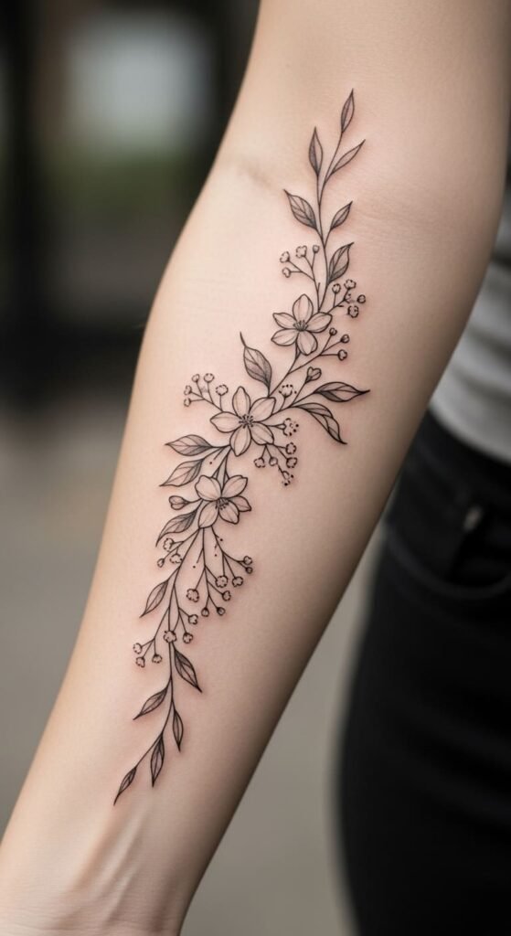 Tiny floral vines wrap around the collarbone like a gentle hug. Picture a small chain of blooms that follow your body’s curve. This design looks fresh and natural. Start with a simple sketch on paper to see how it flows. Use free online apps to draw ideas before visiting a studio. Keep costs low by choosing black ink over colors. A basic session might run under $100 in many places. Add your own twist, like adding a leaf for a milestone. Real talk: Healing takes two weeks, so wear loose shirts. Try a DIY mock-up with henna for a trial run. Bold the key: practice your design first. This makes the process fun and affordable.
