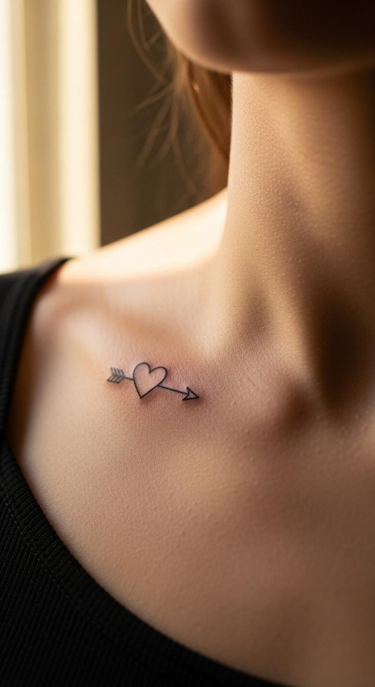 Heart and arrow pairs emotion on your collarbone. Envision a heart with a line. This is sweet and direct. Draw on paper. Use pins for placement. Fees at $55. Customize the arrow. Healing involves gentleness. Practice with drawings. Bold the key: pair shapes. It’s straightforward.