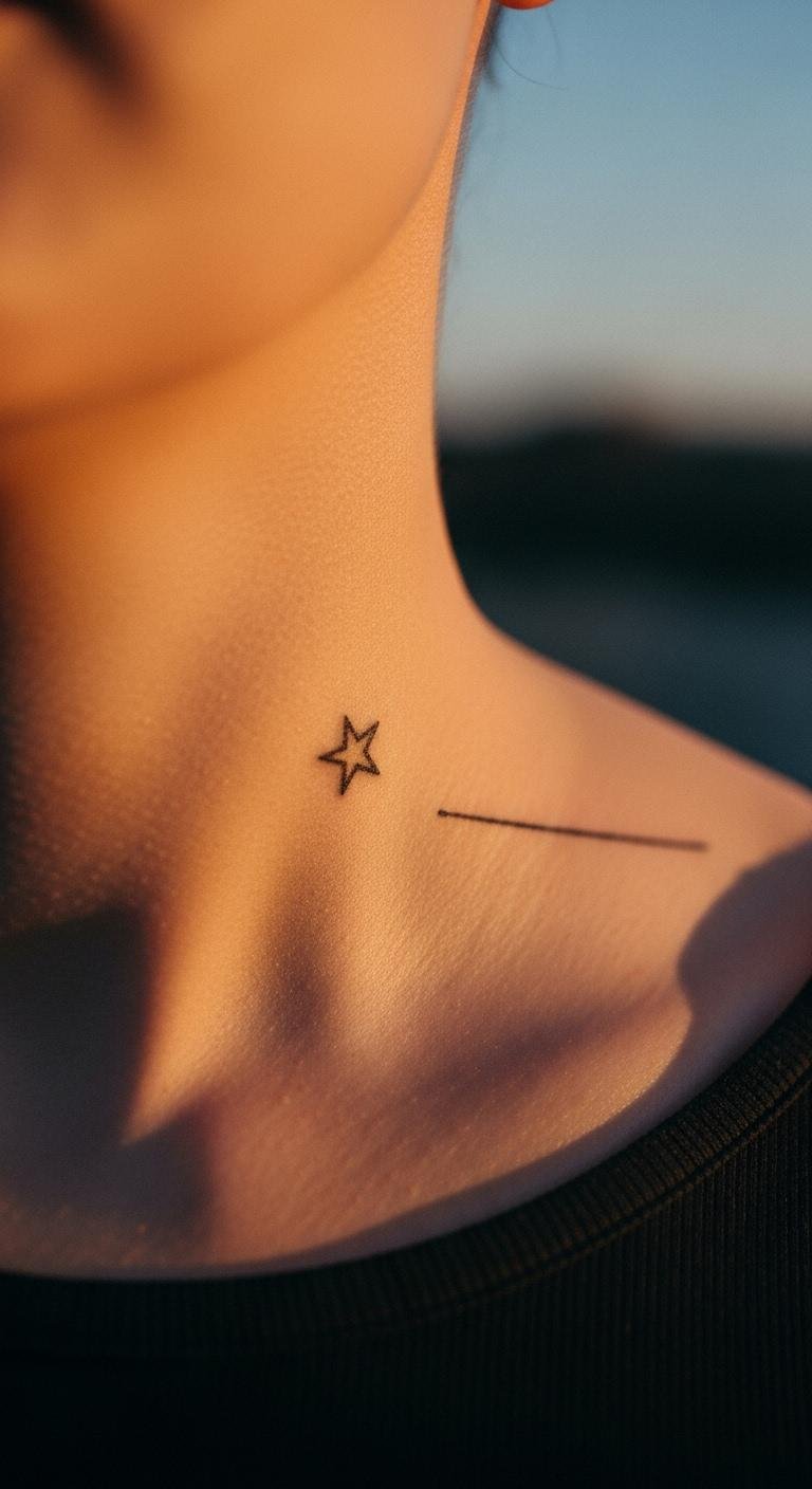 Tiny star clusters bring a cosmic feel to your collarbone. See them as little lights in a row. This design sparks wonder without overwhelming. Draw stars on scrap paper with a pencil. Use star stickers from craft stores to plan spots. Expect costs around $55 at nearby parlors. Make it yours by grouping them unevenly. Healing involves gentle care; skip heavy jewelry. Practice with glow-in-the-dark stickers at night. Bold the key: use everyday items. It turns planning into play.