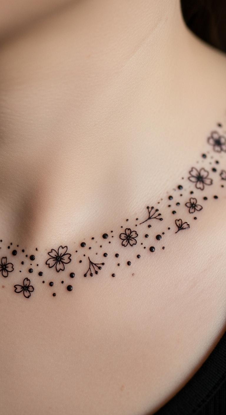 Floral dot combos mix blooms and spots on your collarbone. Think of it as a garden of simple elements. This blend feels balanced and cute. Use dot stamps and flower drawings from home supplies. Arrange with beads and petals for a free mock-up. Prices hover at $65. Personalize by choosing your favorite flower. Healing needs light touch; wear open-neck tops. Experiment with collage cutouts. Bold the key: build with basics. It keeps things fun and low-cost.