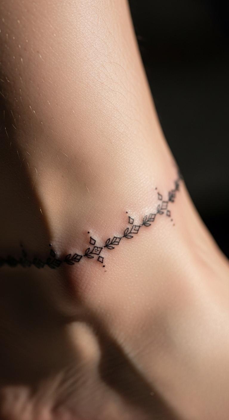 Ankle tattoos mimic jewelry. Go for linked chains. Draw it with string. Artists price at $40. Use jewelry as templates. Opt for thin lines. Sessions are quick. Add charms. This saves on accessories. Care with socks. Bracelets enhance outfits. You’ll wear them proudly.