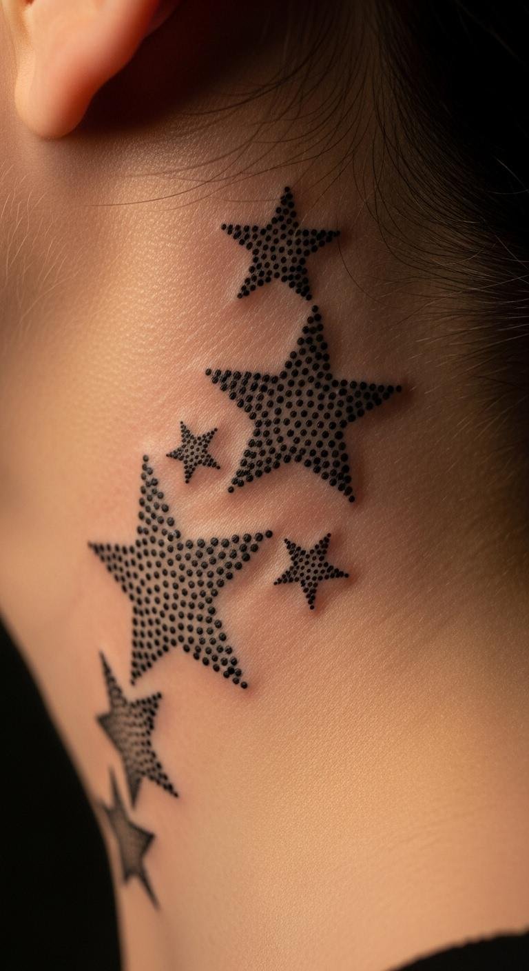 Dotwork themes create cosmic feels. Go for star clusters. Place on your neck. Practice with punches. Studios do for $35. Use dot stickers. Build slowly. These tell tales. Add constellations. It’s detailed and budget. Care with precision. Themes captivate. You’ll gaze in wonder.
