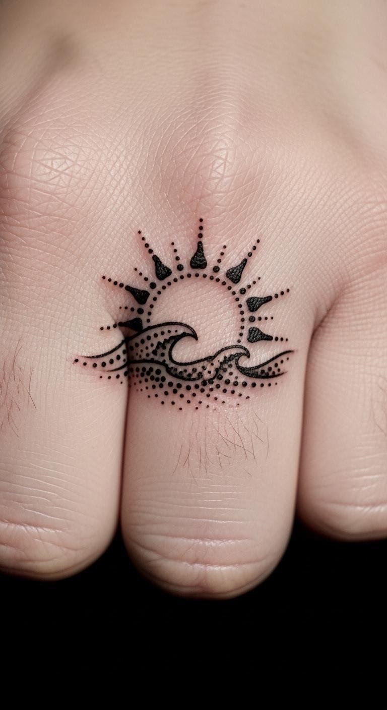 Mini dots in wave sun. Knuckle keeps it tiny. Dot a knuckle sketch. Quick idea. $30 fee. Dot masters are best. Micro dots save. Knuckle is subtle. 10-minute session. Add a wave dot for mark. It symbolizes spark. Try dot stickers; cheap. Healing: hand care. Use with rings.