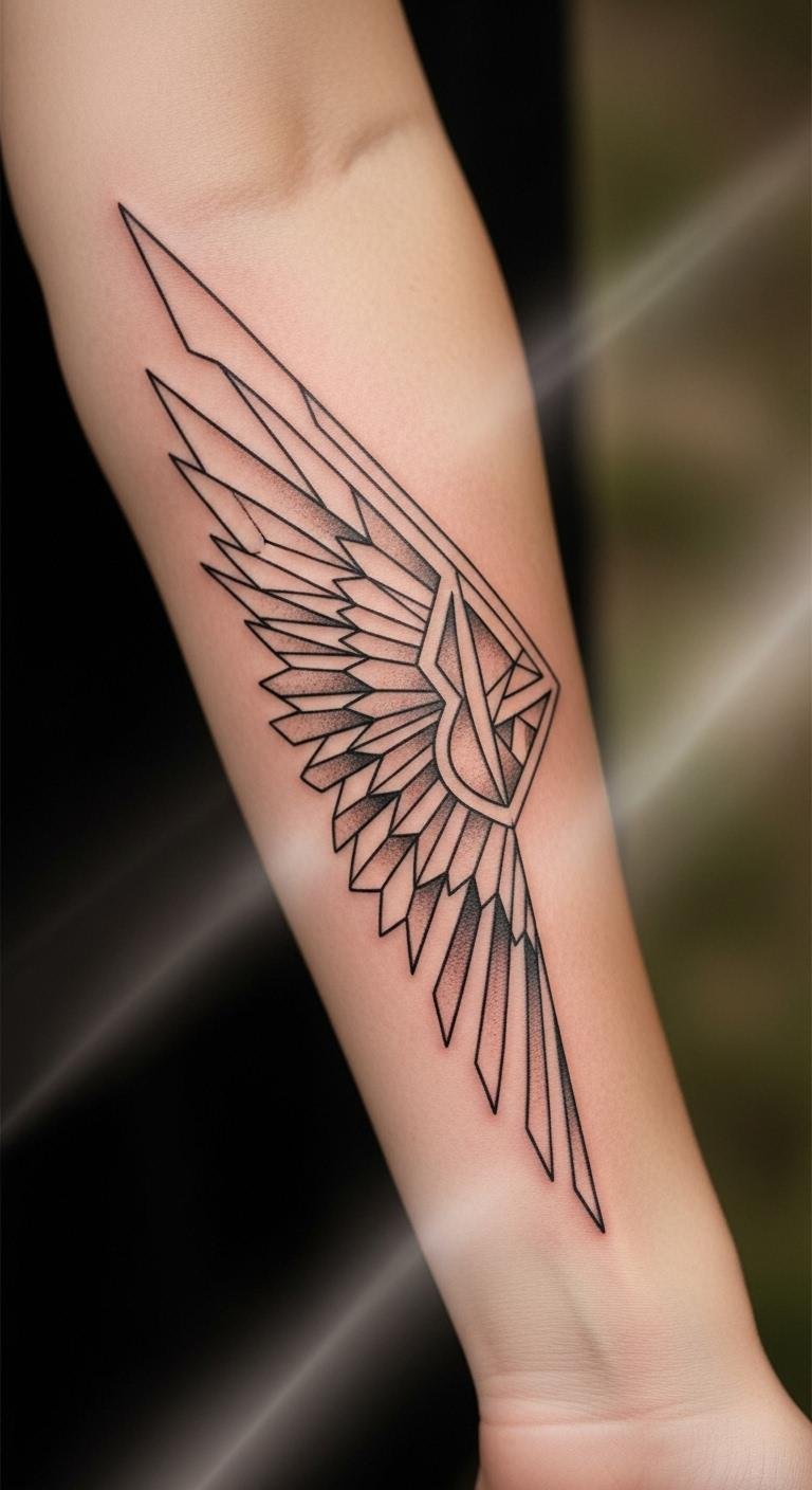 Geometric wings mix shapes for modern edge. They use triangles in feathers. Design from grid patterns. Sketch on grid paper. Saves time and money. Go for simple ones at $60. Add angles in drawings. Outline with string. Protect with covers. Perfect for structured styles.