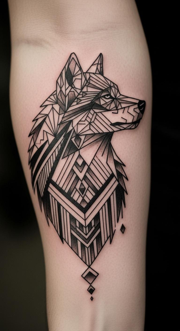 Geometric wolf turns shapes into a wolf on your forearm. Triangles and lines make it modern. This one plays with form. Use straight edges to save on work. Build with stencils at home. Apps assist in design play. Place along the arm’s lines. Local spots offer shape deals. Add a pattern twist. This tattoo fits professional settings. It modernizes tradition.