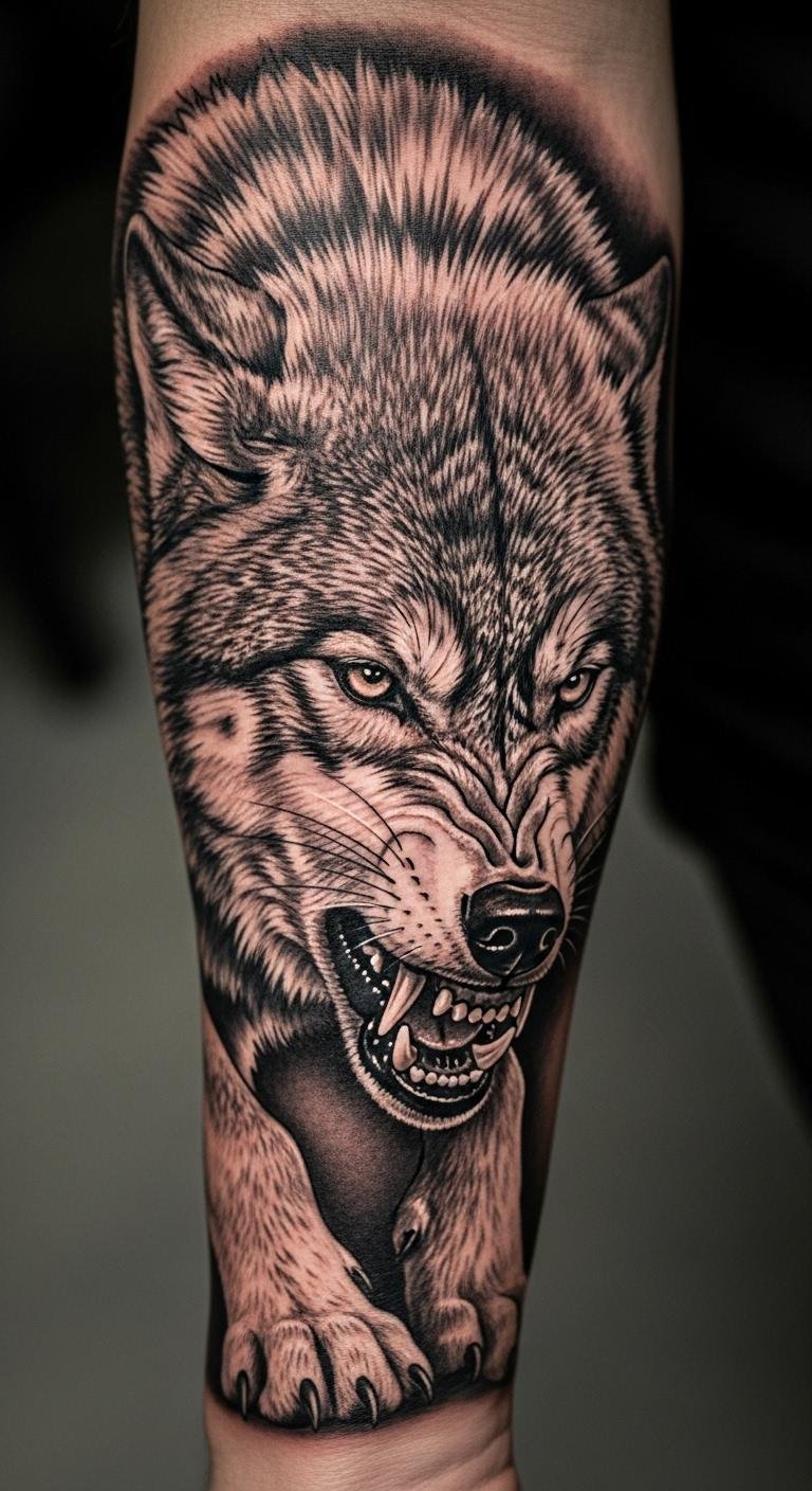 Protective wolf guardian watches over your forearm. A defensive stance says safety. It’s reassuring and strong. Use pose lines to save. Pose with toys at home. Guardian ideas online inspire. Place on the guard spot. Shops offer defense themes. Add a shield element. This tattoo wards off doubts. It offers real protection.
