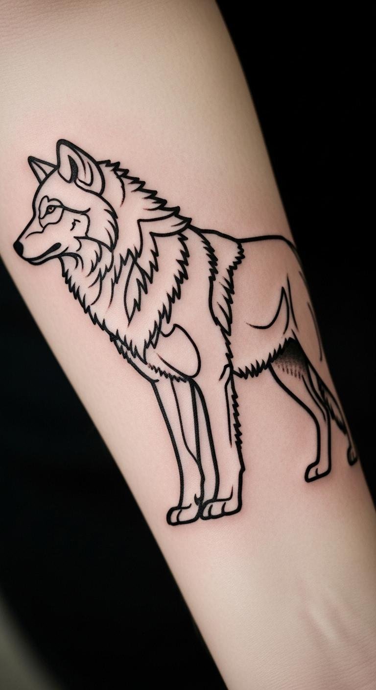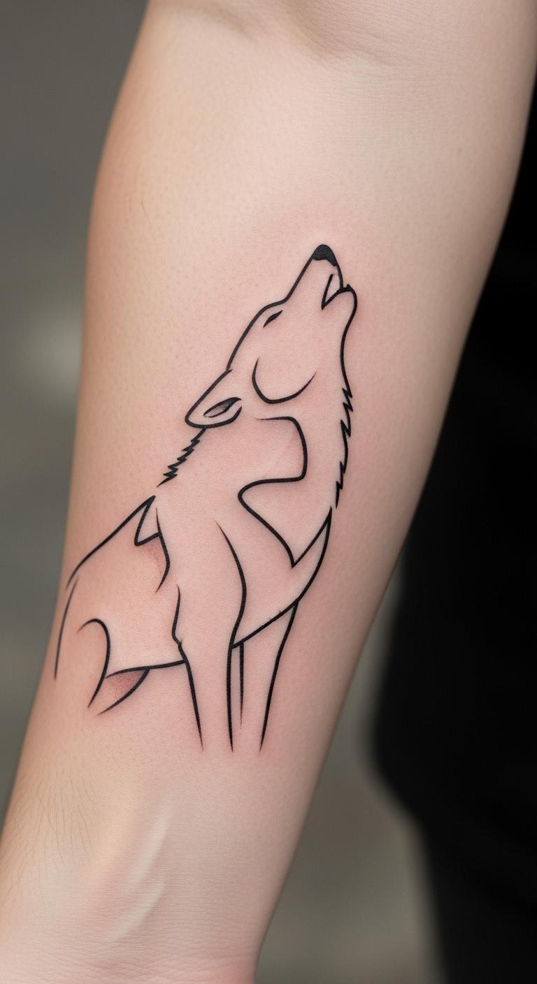 A minimalist wolf silhouette keeps things clean on your forearm. Just a few lines capture the essence without fuss. It looks sleek and understated. Use one color to stay budget-friendly. Try tracing a basic outline on paper as a home project. Free drawing tools online help you adjust the size. Put it on the inner arm for easy hide or show. Local shops might offer deals for simple work. Add a dot for a moon effect. This design works under sleeves or at work. It symbolizes instinct with minimal effort.