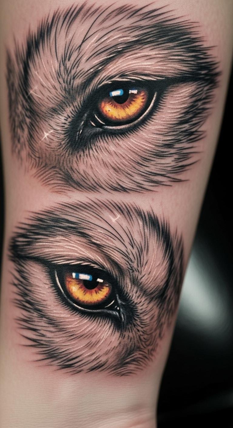 Wolf eyes tattoo centers on the gaze on your forearm. Those stares draw you in with emotion. It’s a striking focal point. Use basic shading to stay affordable. Practice eye sketches with everyday pens. Digital tools simulate the look. Place eyes on the forearm center. Artists often price per element. Frame with a simple border. This design pops in photos. It conveys feeling through simplicity.