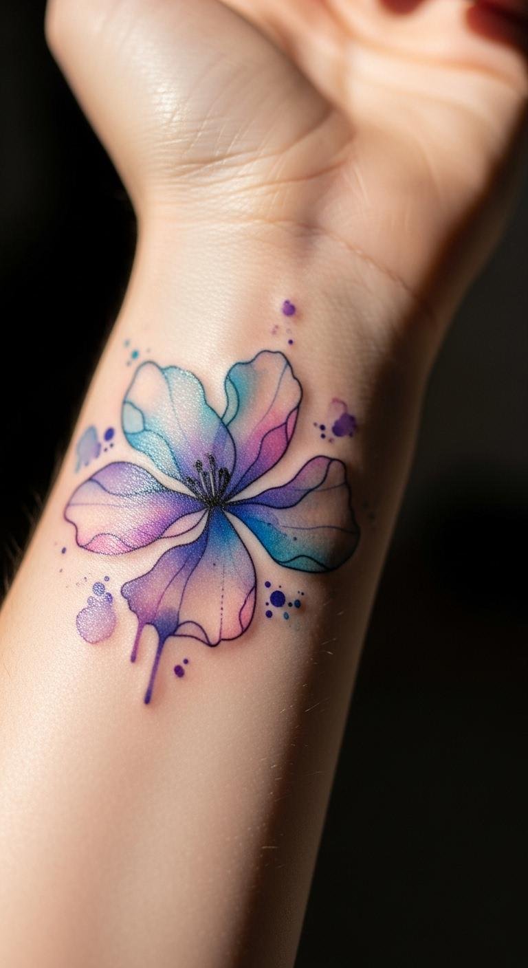 Flowers in watercolor bring color to your wrist. Think soft petals that fade like art. Draw a rough flower on paper to plan. Use colored pencils for practice. This costs nothing extra. Find artists who specialize in this style for around $100. Opt for fewer colors to cut costs. Place it on the inner wrist for a hidden gem. The design pops with pastels. Add a stem for extra meaning. Heal it with basic lotion from your home. Avoid sun exposure right after. These tattoos show grace and growth. Try a temporary version first with henna. It’s affordable and washes off. Keep your skin moisturized during healing.