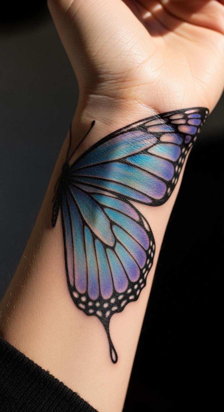 Butterfly wings show change. Sketch wings on paper to start. Add spots with markers. No cost. Tattoos for $80. Opt for outlines. Place on the top for flight. They mean evolution. Heal with daily creams. Protect from wear. These designs celebrate growth. Try with fabric wings attached.