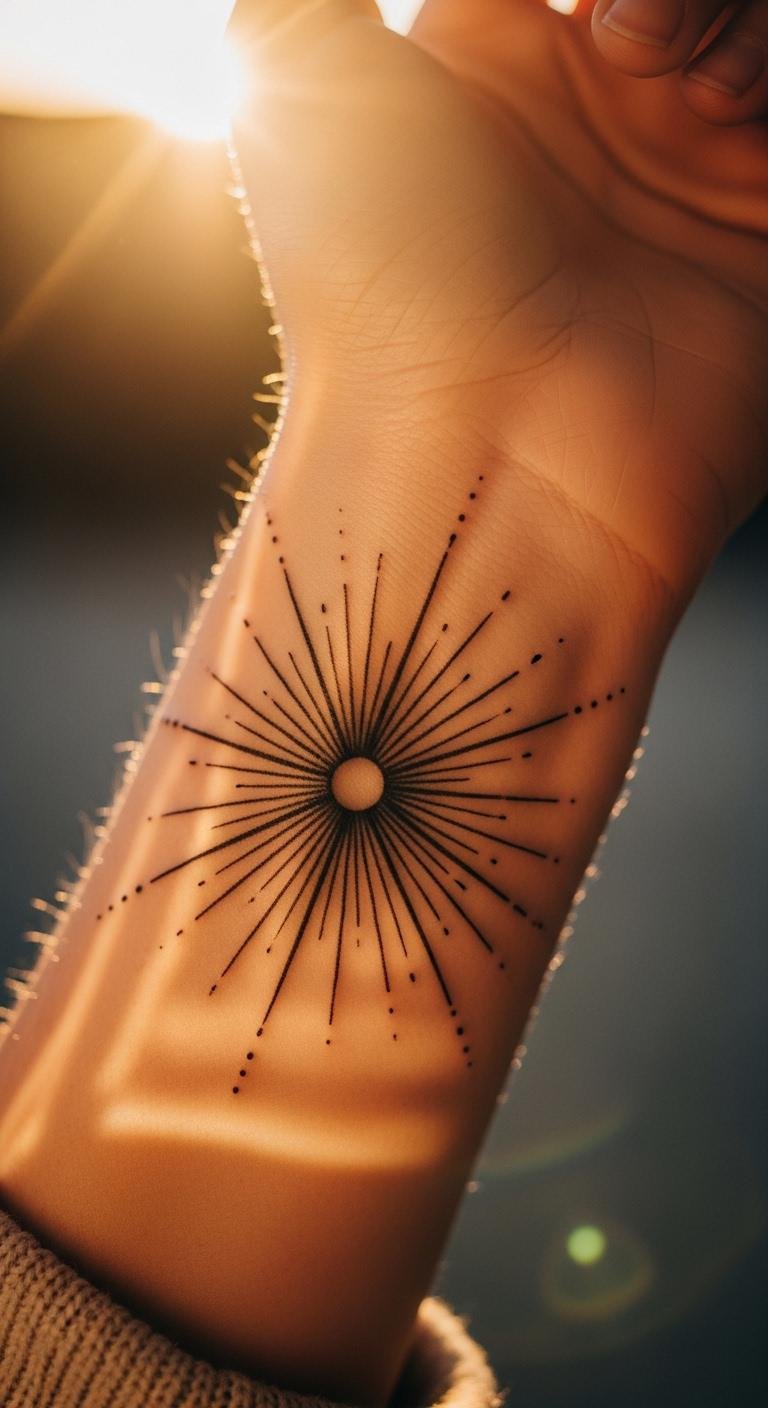 Sunbursts bring energy to your wrist. Sketch bursts on paper to plan. Use rays outward. No cost. Designs at $70. Opt for rays only. Place on the outer side for warmth. They represent vitality. Care with gentle touches. Expose to air. These patterns spark joy. Test with sun drawings.