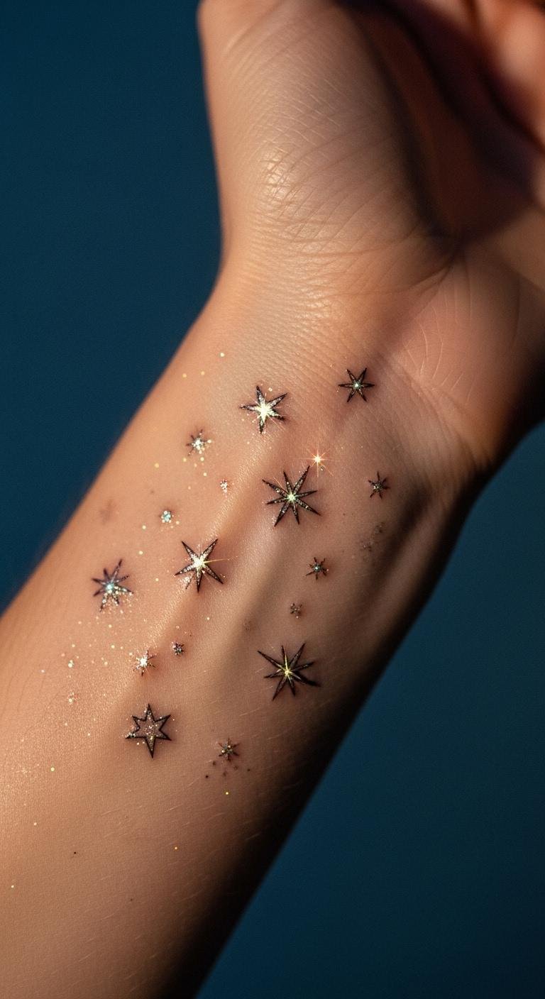 Stars on your wrist light up your path. Sketch stars on paper to begin. Add points with a pencil. Free and fast. Artists charge about $70 for small ones. Go for outlines to save. Place them near the hand for a starry night. They represent dreams. Heal with band-aids from your drawer. Keep it clean with soap. These patterns inspire adventure. Try drawing with eyeliner first. It wipes off easy.
