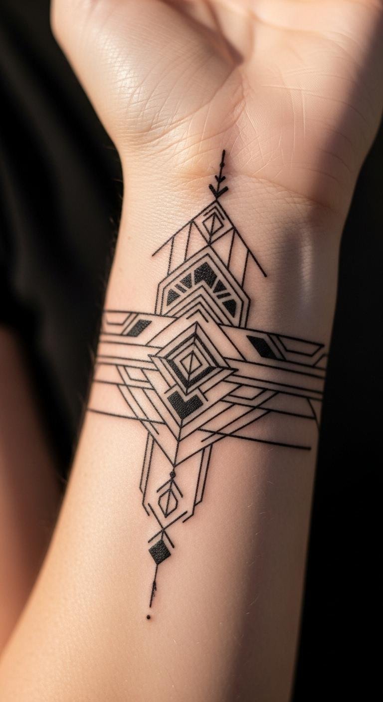 Shapes like triangles bring order to your wrist. Draw them on scrap paper first. Use a ruler for straight edges. No expense needed. Budget shops do these for $50. Opt for basic forms. Put it on the top for balance. They show strength. Care with cotton swabs and ointment at home. Let it breathe. These designs promote focus. Test with tape outlines. Peel and adjust.